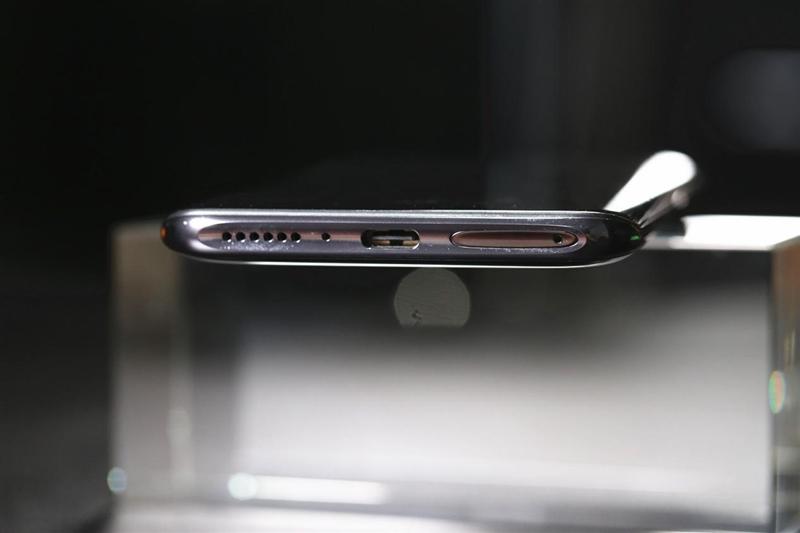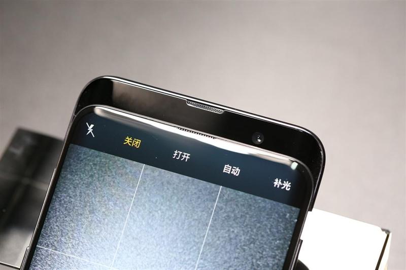 这是机身顶部,放大来看,我们可以发现听筒被设计到了边框内部,OPPO Find X*博兰**基尼版为了把更多的空间留给屏幕,也是费尽心思了。