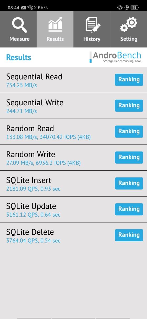 Androbench简介:AndroBench是一个基准测试应用,可以测量Android设备的4K随即存储·存储性能,包括内部或外部存储。