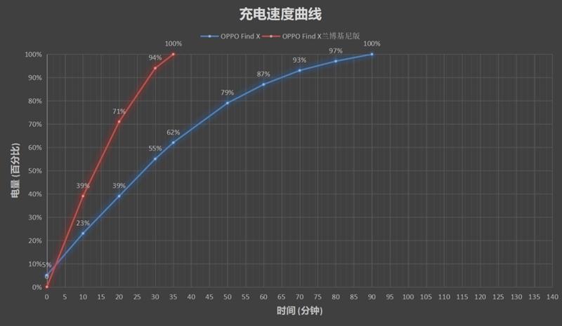 OPPO Find X*博兰**基尼版充电速度采用红色曲线标示