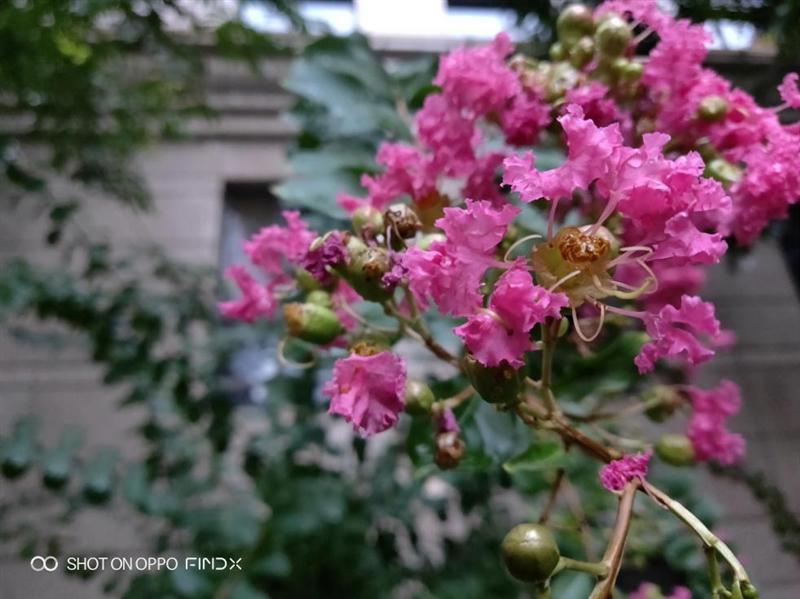 由于后置摄像头光圈最大只有F/2.0+F/2.0,在阴天的天气受较少的进光量影响,微距下的紫薇花出现了明显的噪点,但好在色彩还原非常真实。