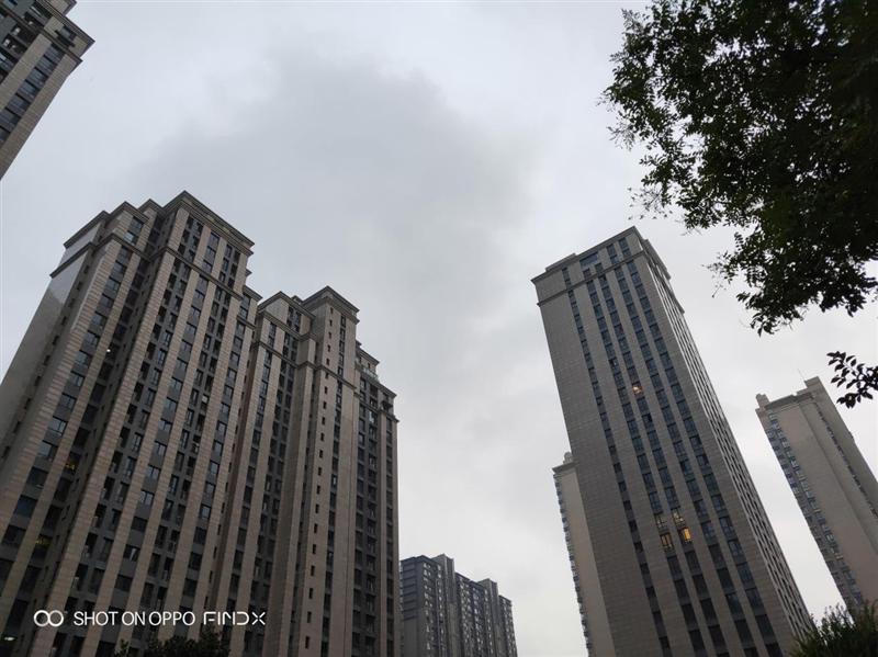 天空样张,相机真实还原了阴天无光的场景,没有做过度渲染,楼体颜色相比晴天黯淡许多,图中清晰可见有几户人家已经早早点起了灯。