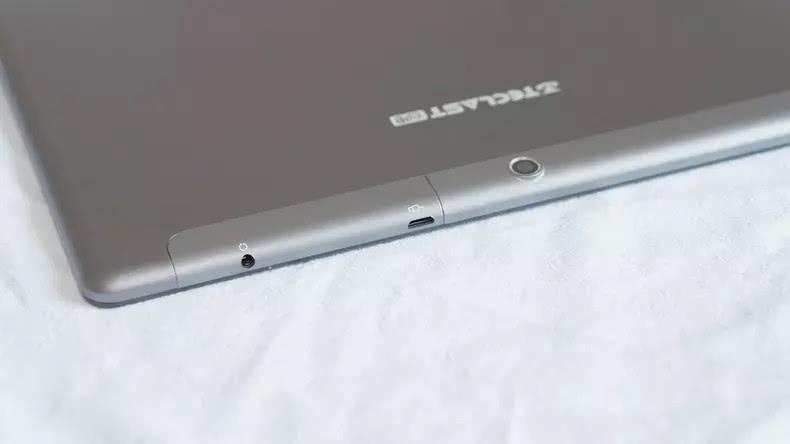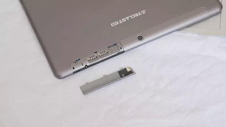 顶部除了摄像头还分布了3.5mm耳机孔和micro-USB口。注意这块和摄像头是分开的,轻轻掰开就是两个sim卡槽和TF卡槽。这台平板支持Wi-Fih和双4G网络,外出的时候用4G,有Wi-Fi的时候连Wi-Fi,到哪都不会耽误使用了。