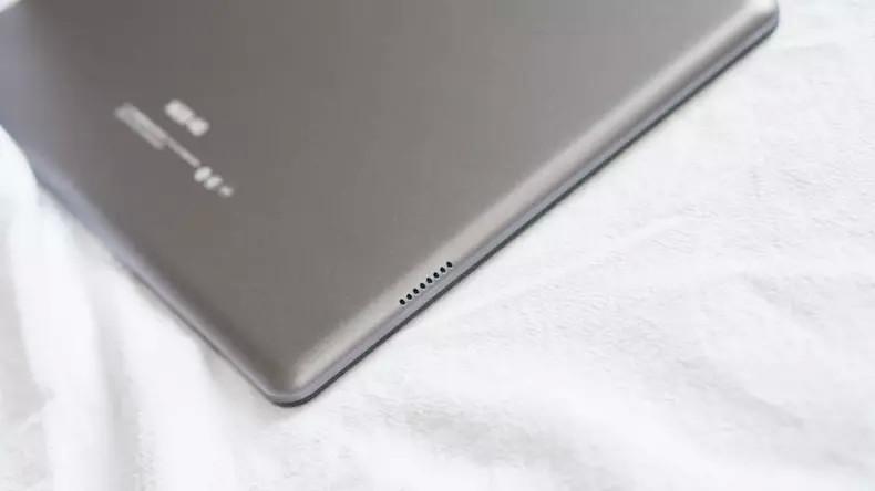 机身侧面过渡圆滑,带来了出色的握感。在屏幕四周还做了CNC高光倒角,来增强质感。在平板的右侧,分布了音量键和电源键以及RESET键。左右两侧都分布了扬声器,声音足够大。