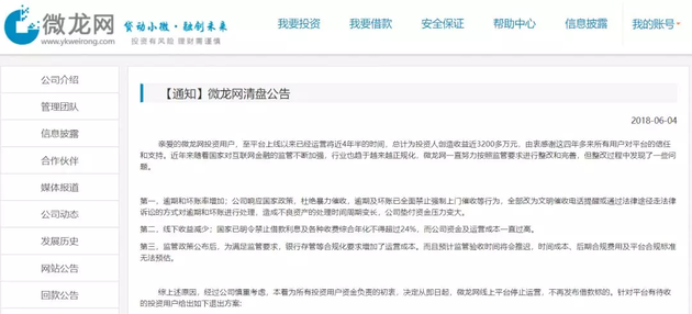 日前,小灰熊金服、微龙网也在官网发布公告,选择清盘退出,兑付期限在3~36个月不等,对于网贷行业来讲,清盘也给众多积重难返的平台指出了一条新的退出道路。