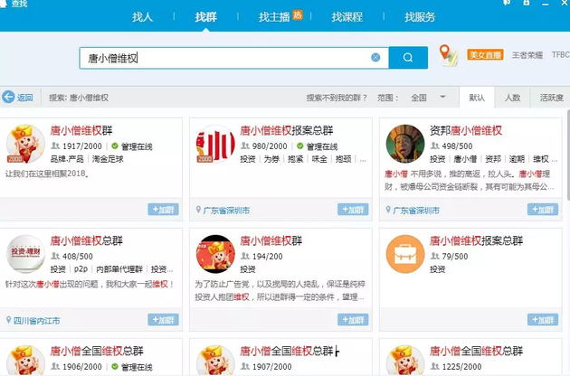 此前在QQ搜索“唐小僧维权”,画面是这样的