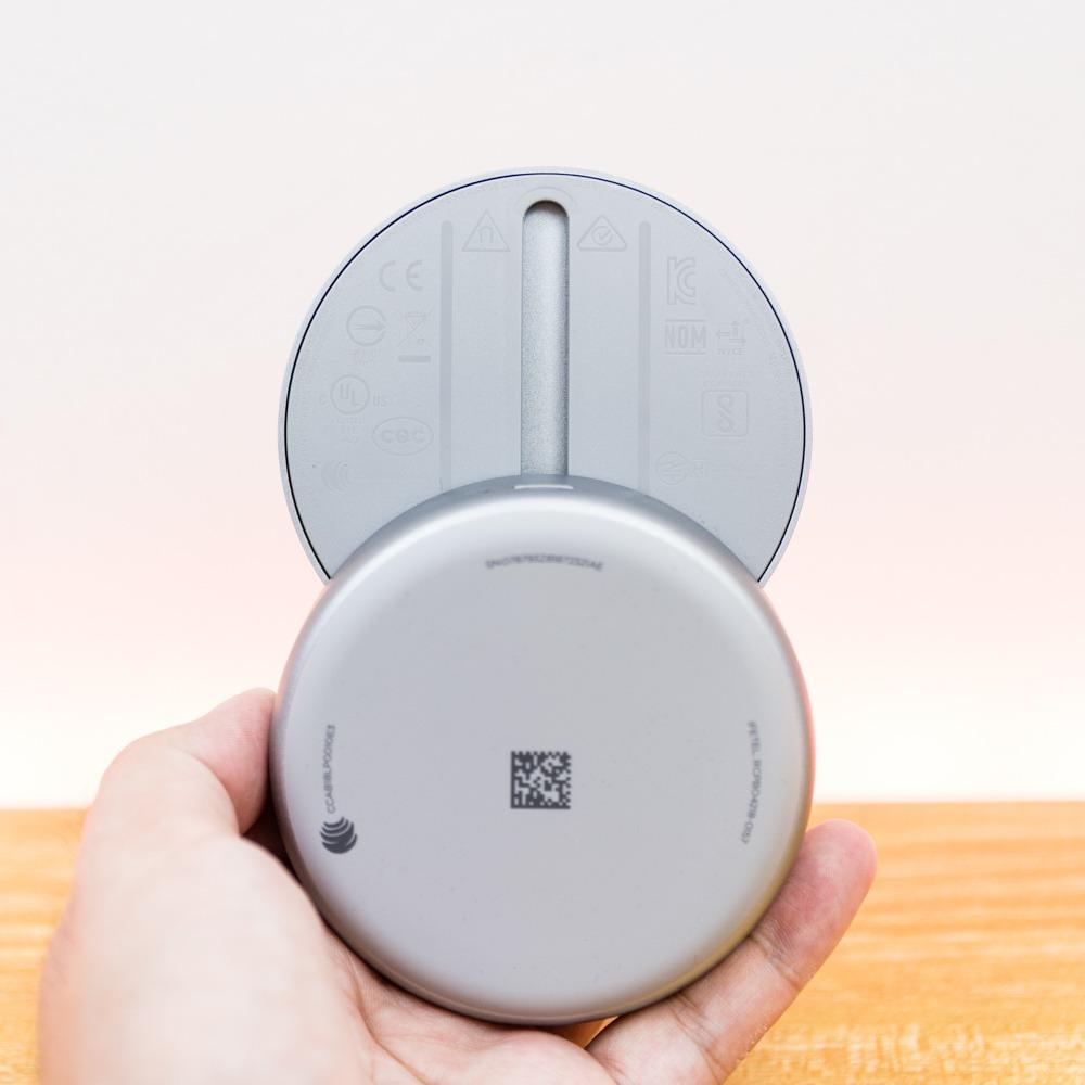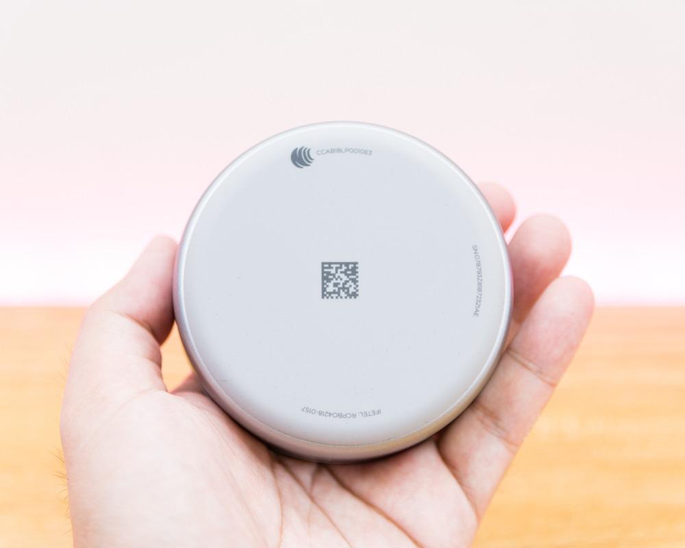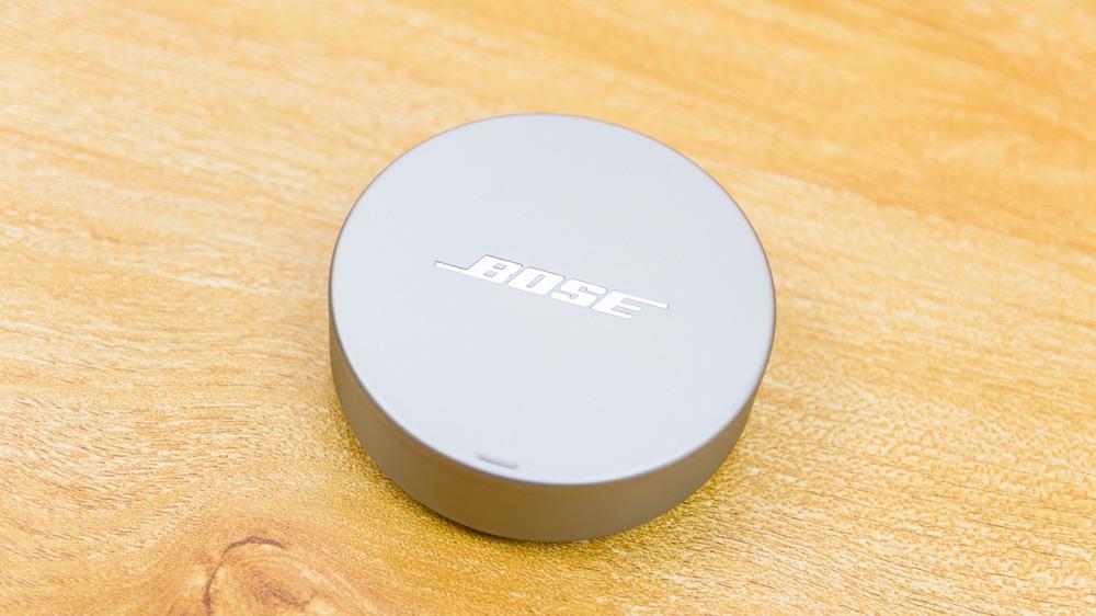 接下来,我们来看看产品的外观设计。首先Bose遮噪睡眠耳塞被放置在了一个圆饼型的充电保护盒中。这个保护盒的做工相当精致,金属的外材从顶部覆盖到了侧面,顶部正中有BOSE的标志镜面文样。