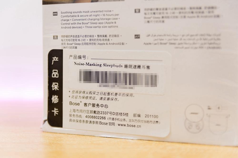 其实我收到的Bose遮噪睡眠耳塞包装外面还套有一层透明的塑料保护膜,本想撕了随手扔去,但是后来发现了背面的玄机。