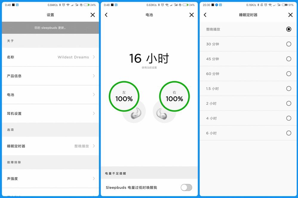 ◇【设备设置】:Bose Sleep针对Bose遮噪睡眠耳塞的设置可以预览电池电量、设置睡眠定时器等。这个睡眠定时比较刚需,因为如果只能保持整晚的工作状态,对于已经入眠的用户而言可能又会抓狂了。