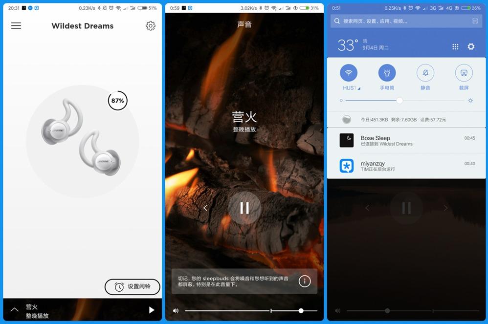 2.Bose遮噪睡眠耳塞共有10种声效可选,音量可调节,还能够设定声效的持续时间。