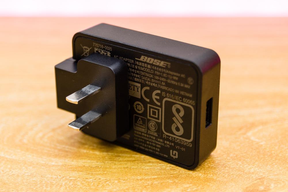 然后就是Bose遮噪睡眠耳塞的充电插座,因为我在大陆地区,自然用的是两口或者三口的平口插头。