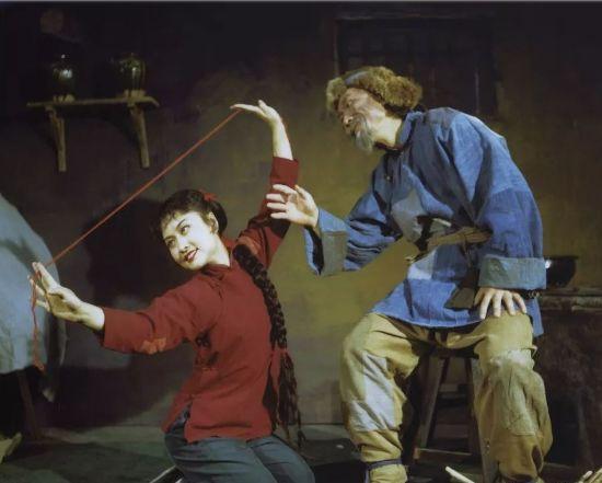 看过田华老师在电影《白毛女》中剪窗花的剧照,天真、美丽、纯朴,一个纯洁无暇、略含羞涩、真实的农村少女。第一个亮相,我以此为据。内心装着一个活喜儿,定型就有了着落。我也以此定型第一幕的基调。