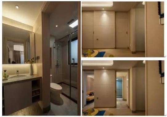 考虑到早晚使用高峰期家庭成员的不同需求,洗手台被外移到走道里。通过精心设计的盥洗空间使洗漱、沐浴等各种活动同时进行时都能得到完美的满足。