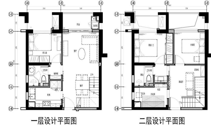 本案业主为年轻夫妇,考虑到将来人口变化的可能性,需要预留出二孩和老人的卧室空间,故在卧室规划上,采用了分楼层3+1模式:一楼设计了一个卧室并带有洗手间,方便老人使用;二楼设计两个卧室加一个书房,书房可灵活变化为儿童房,分楼层设计卧室可避免老人和年轻人因生活作息时间不同而造成的干扰。