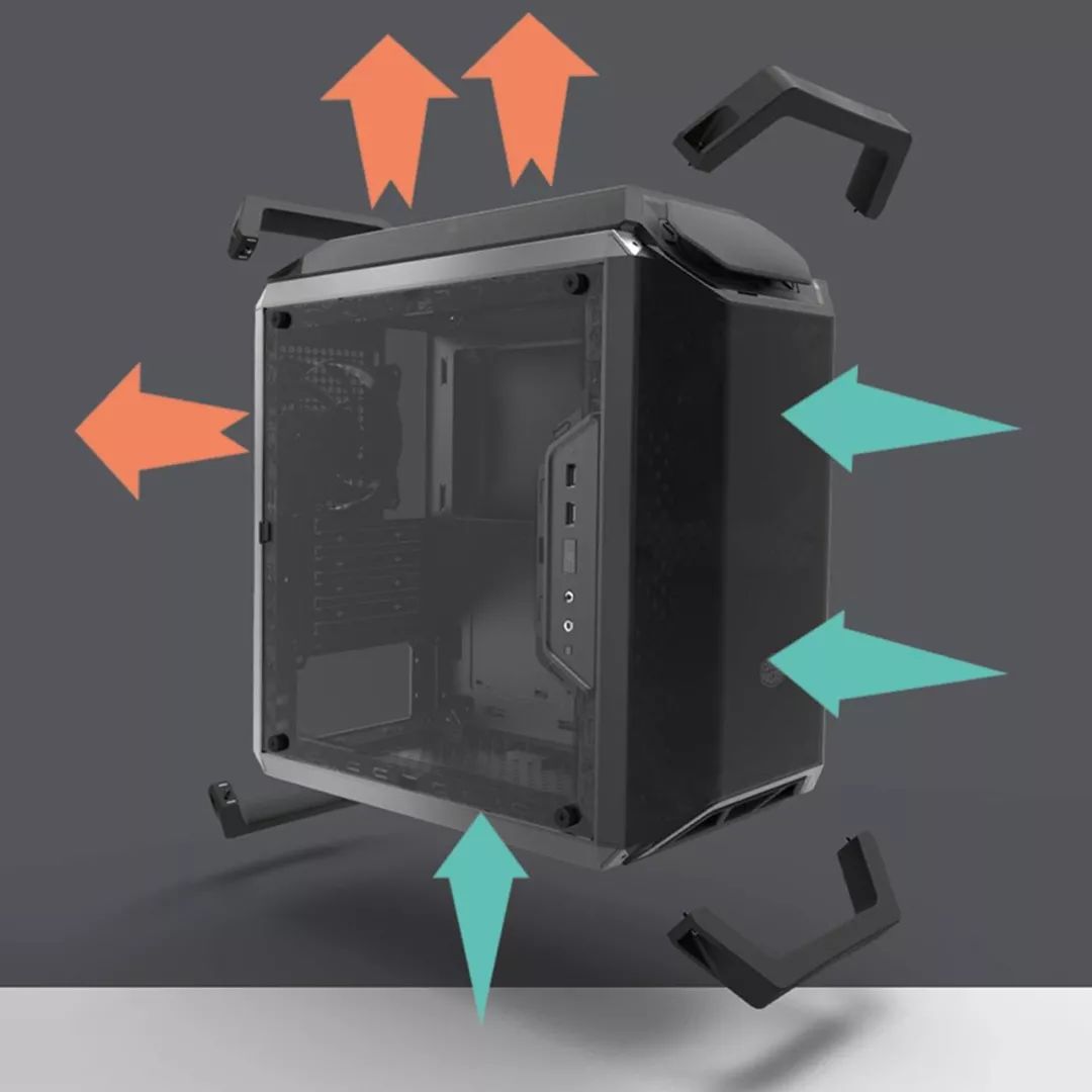 最常见的风道呢,就是前、下侧进风,后、上侧出风,大同小异,这种结构的机箱设计方案成熟、通用性高,很快就在大众市场上蔓延开来。不过弊端也很明显,如果没有做好风道,那么机箱就会成为一个大蒸笼一样,热量都积压在里面。