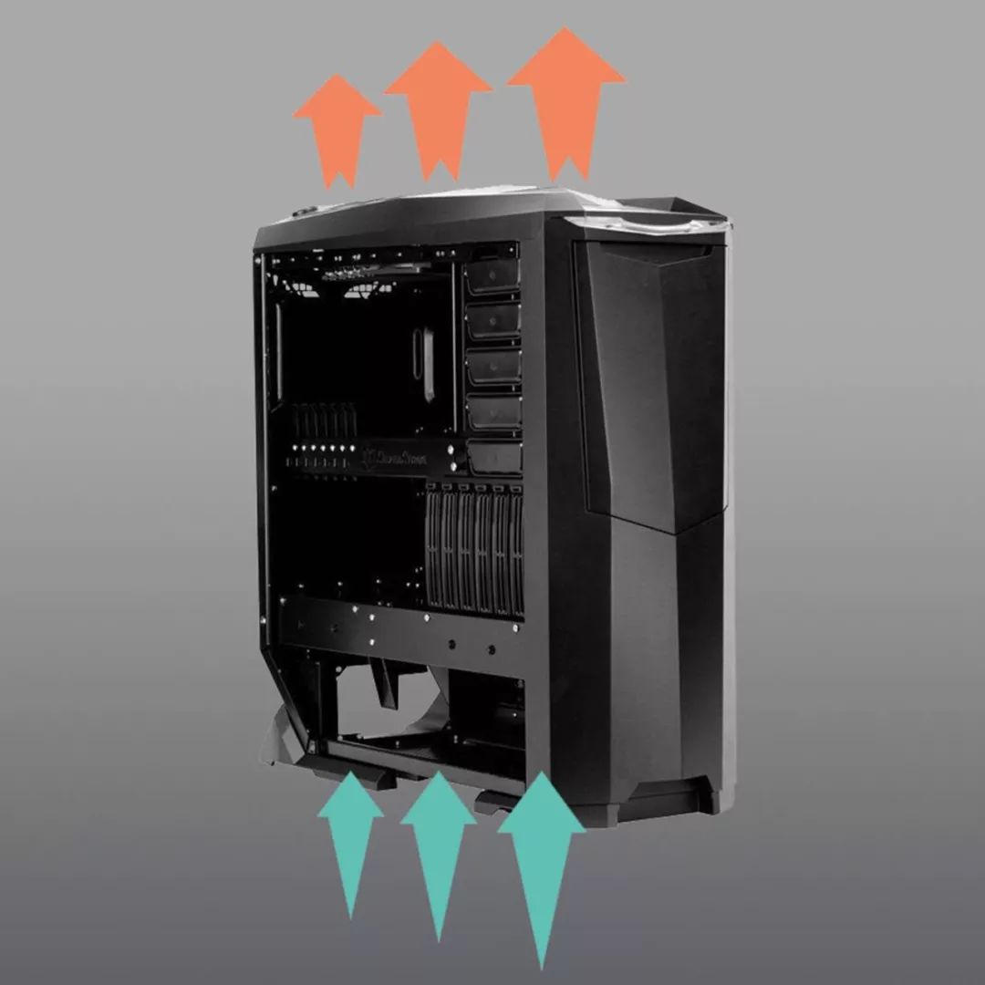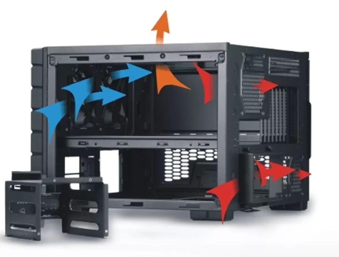 相对理想的风道是从下侧吸风、上侧排风。因为空气越冷密度越高,一般冷空气往会下沉、暖空气会上升,这样可以让进入的风更凉、提高了散热效率。如果你细心留意,会发现开了空调冷风会往上吹、暖风会往下吹也是这个道理(反向利用)。
