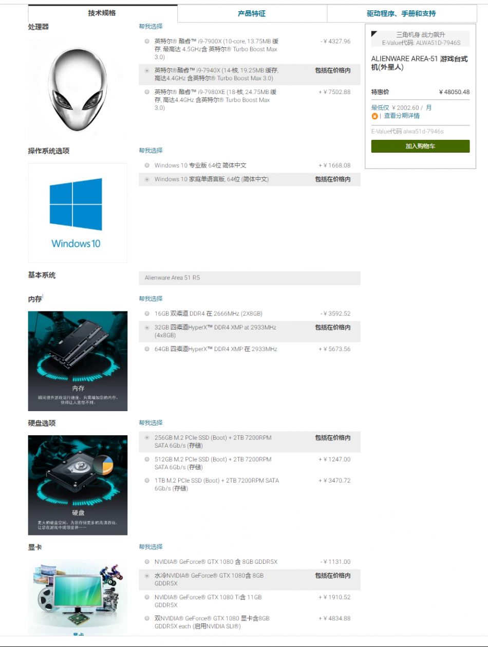 后来在外星人官网上发现还有定制。那就更符合我的要求了。配置如下。