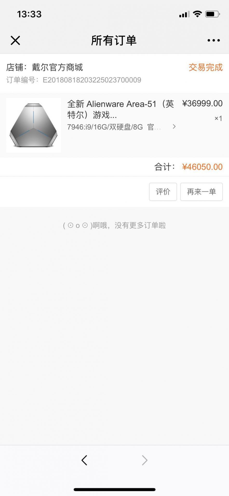 8月18号晚上在戴尔微信商城联系客服拍下,拍下的是i9的标配,然后客服改价46000多,直接拍下,周六晚上拍下,五天后周五收到。