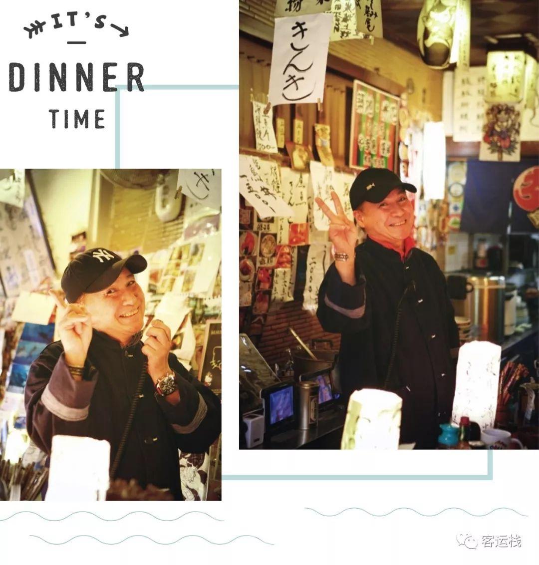 年过50,二郎却活泼、俏皮得很。店内前台只有他一人张罗:斟茶、点单、收拾碗碟、传菜,间隙之中还忙着教几桌客人说一些超实用的日语,不但口头教,还用双语对照写在纸上送给客人。拍照在筑地餐厅是很不受欢迎的事,在米花却恰恰相反。无论在店内外,只要有人举起镜头,二郎都能雷达般扫描到,立即摆起POSE。上菜时二郎还不忘嘱咐客人:“先拍照再吃哦。”