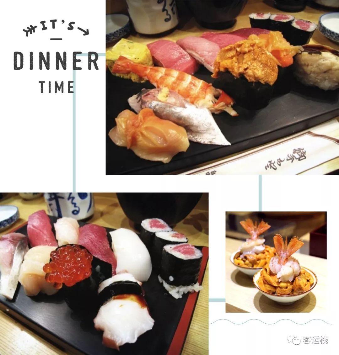 吃寿司和生鱼片,“寿司大”、“大和寿司”是人气最旺的老店,早上5点去都得排队,再晚点就只能在街角的二号等候区站着了。“寿司市场”虽是开业没几年的新店,却因坚持用野生鱼而闻名,且它是筑地为数不多营业到晚上的餐厅。