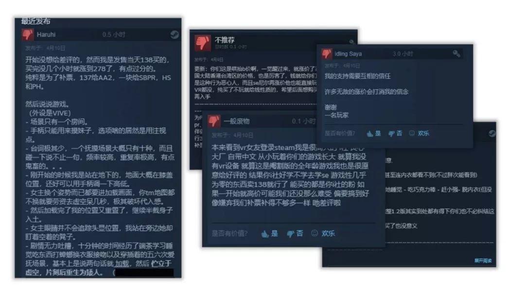“是谁给他的勇气,梁XX嘛?”,起初玩家们都是抱着补票、感谢I社走向的意图给好评的,但I社如此涨价、而游戏本身毫无游戏性,使得许多玩家对此不满而发出差评。