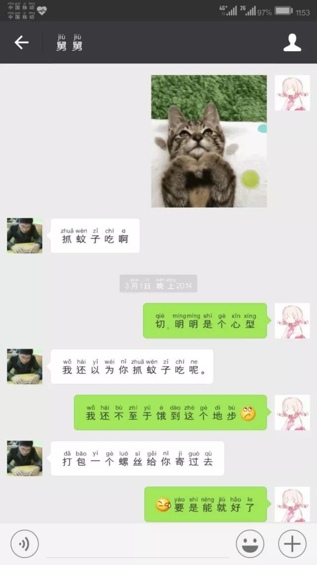 最后在我妈的*脑洗**下,我换了一个可爱又正常。而在换成功的一分钟后,,语音又来了……