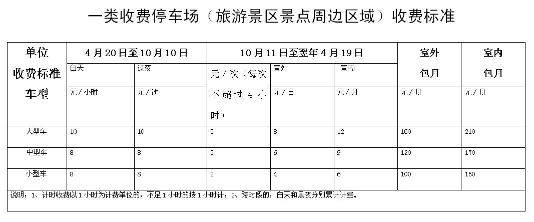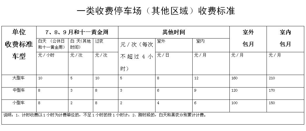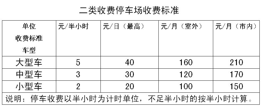 二、停车场收费类别及标准
