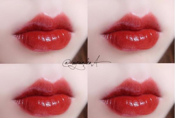 也是一个大网红,颜色很美的红,就是不好涂匀,最好彻底干了再涂一遍。质地算是亮面唇釉里面不粘的了。枫叶红更好驾驭更日常一些,这大概也是今年枫叶红,火爆秋冬的很大一个原因吧