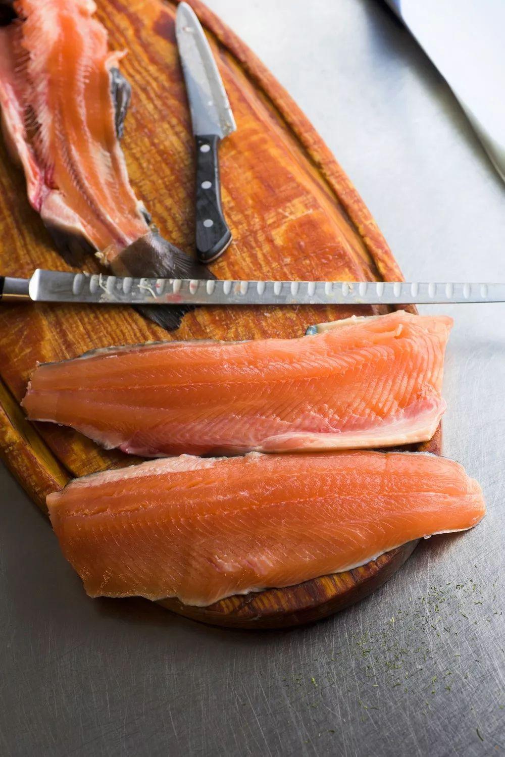 挪威人切三文鱼的刀工也十分了得。