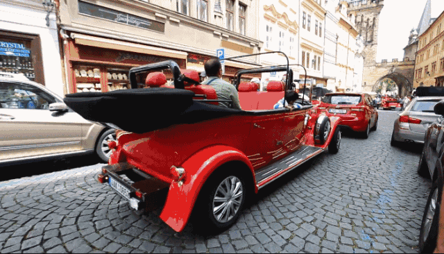 布拉格老城广场上的山寨老爷车,远远看去,似乎是些颜色鲜艳的老爷车,事实上,这些都是改装的旅游观光车,坐车上看布拉格,远远没有步行有感觉,更没有边走边看有味道。这当然是个坑,钱不少花,还没效果。
