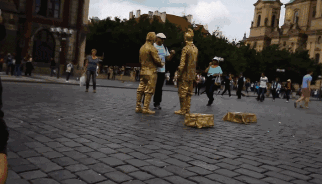 在布拉格主要大街上,有很多行为艺术者,大多是扮演人像雕塑的,站在那里纹丝不动,很多不了解的游客会着急拿出相机给他们拍照或是合影,这下就掉坑里了,别看平时纹丝不动,和真的雕塑一样立马现身,马山动起来找你要钱,语言又不通,警察也帮不了什么,所以这也是一个坑。