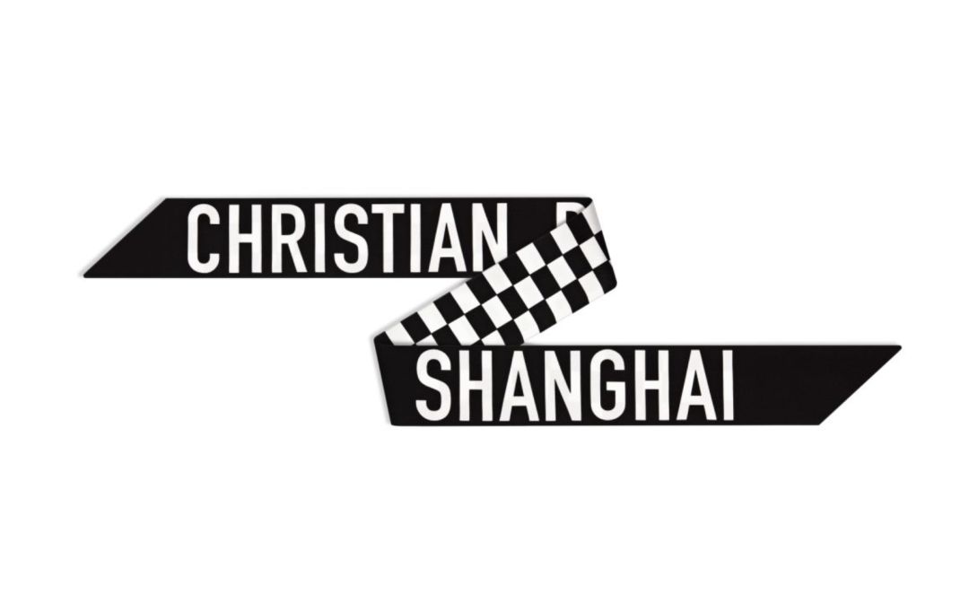 黑白丝质MITZA丝巾亦印有”CHRISTIAN DIOR SHANGHAI”字样。