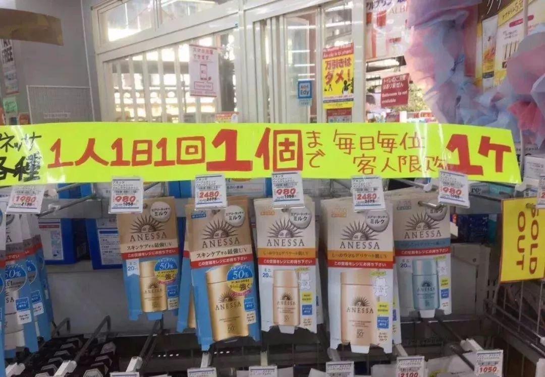 火爆到最近日本很多家店不得不实行每人每天只能买一瓶安耐晒!▽