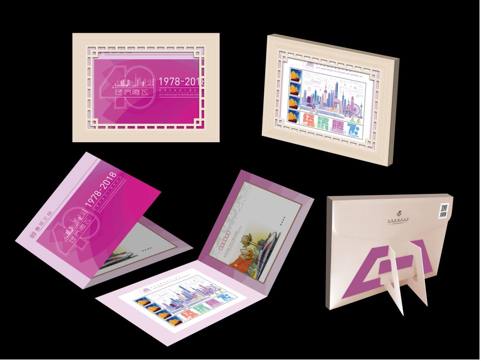 邮品亮点:改革开放40年,我们参考邮册的分册方式,开发十枚一套的邮折。配特殊版个性化邮票一版及手绘封一枚。同时,外插套采用创新的包装形式,既可收藏也可摆放于书桌上,增加了功能性。
