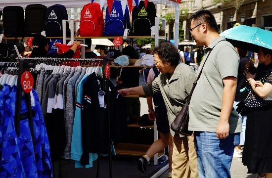 图为国庆黄金周期间,汉街上游客选购法国品牌服装。记者何晓刚 摄