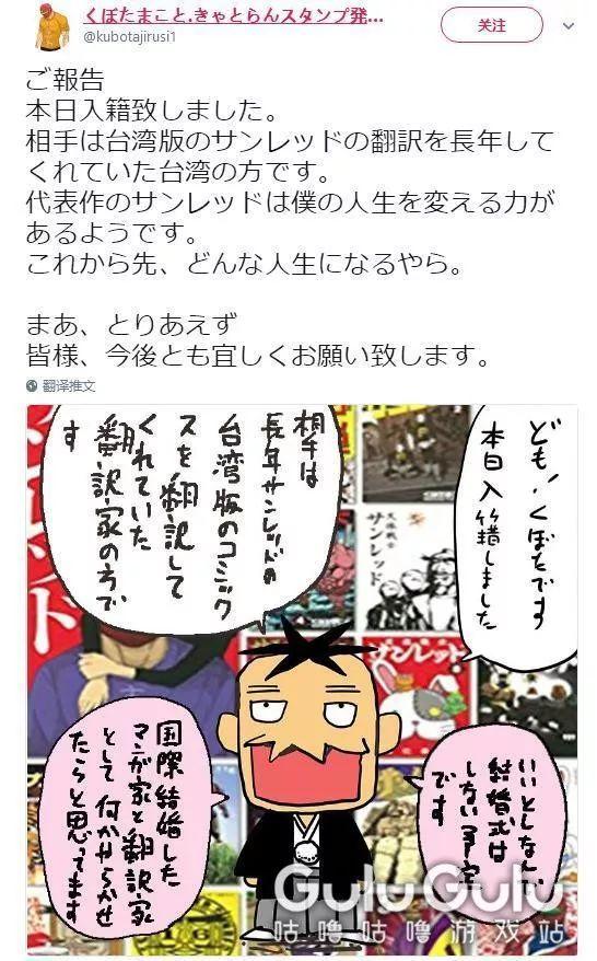 近日《天体战士》漫画的作者久保田诚宣布自己与合作多年的《天体战士》台版漫画翻译结婚的消息。