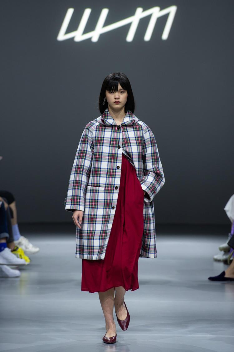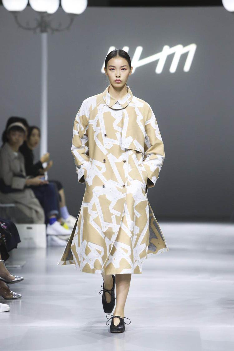 服装仍然以廓形简单且实穿的衬衫、半裙、连衣裙、风衣等为主。最引人注意的是印花:远处看上去似乎只是无序的条状印花,近看才发现是五颜六色的碎布条图案,其中还混有细小的 WHM Logo。前一季的格子大衣以及鹅黄 Polo 衫,也同样变成了写真印花。这种衣物层叠错落的美感发掘自晾衣杆。