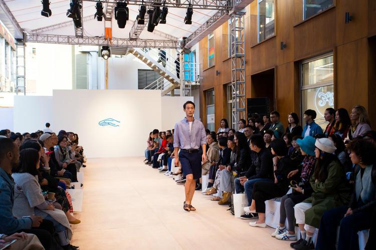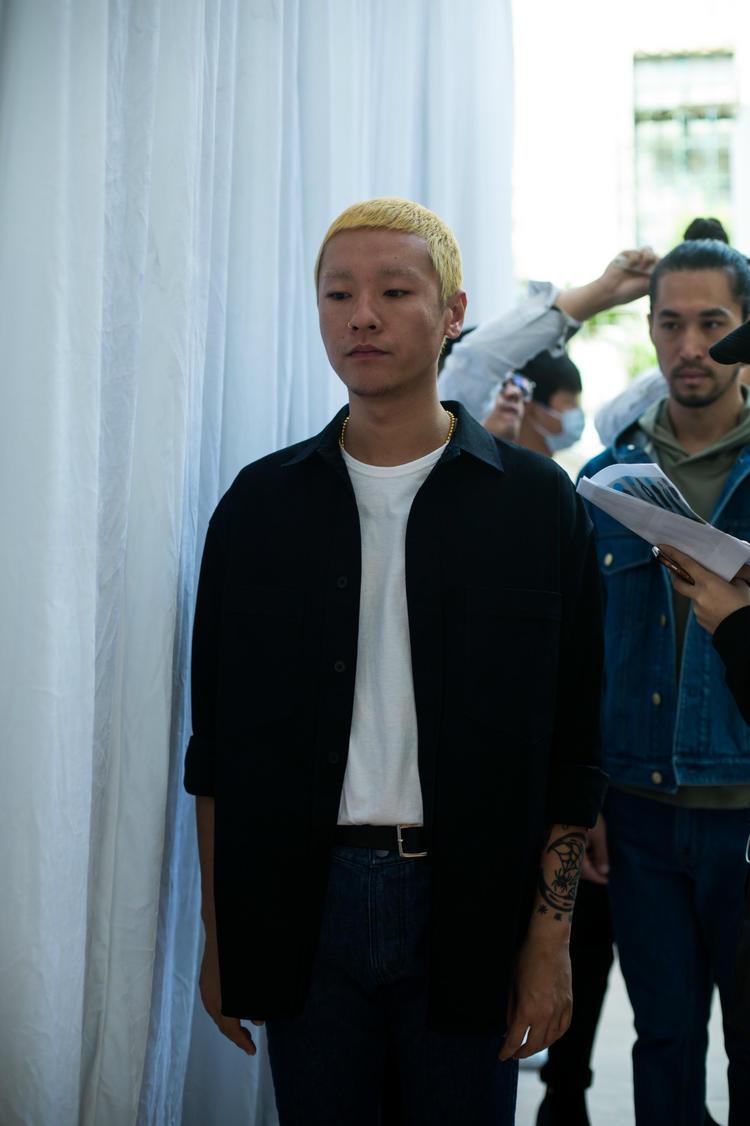 瘦弱的王浩铭穿着白色针织衫,戴一顶灰色棒球帽,头发捆在脑后扎成小辫,满眼血丝。他前一天在兴业太古汇北楼 3 层的多功能厅忙到凌晨 5 点才休息,中午 12 点又回来接着布置秀场。