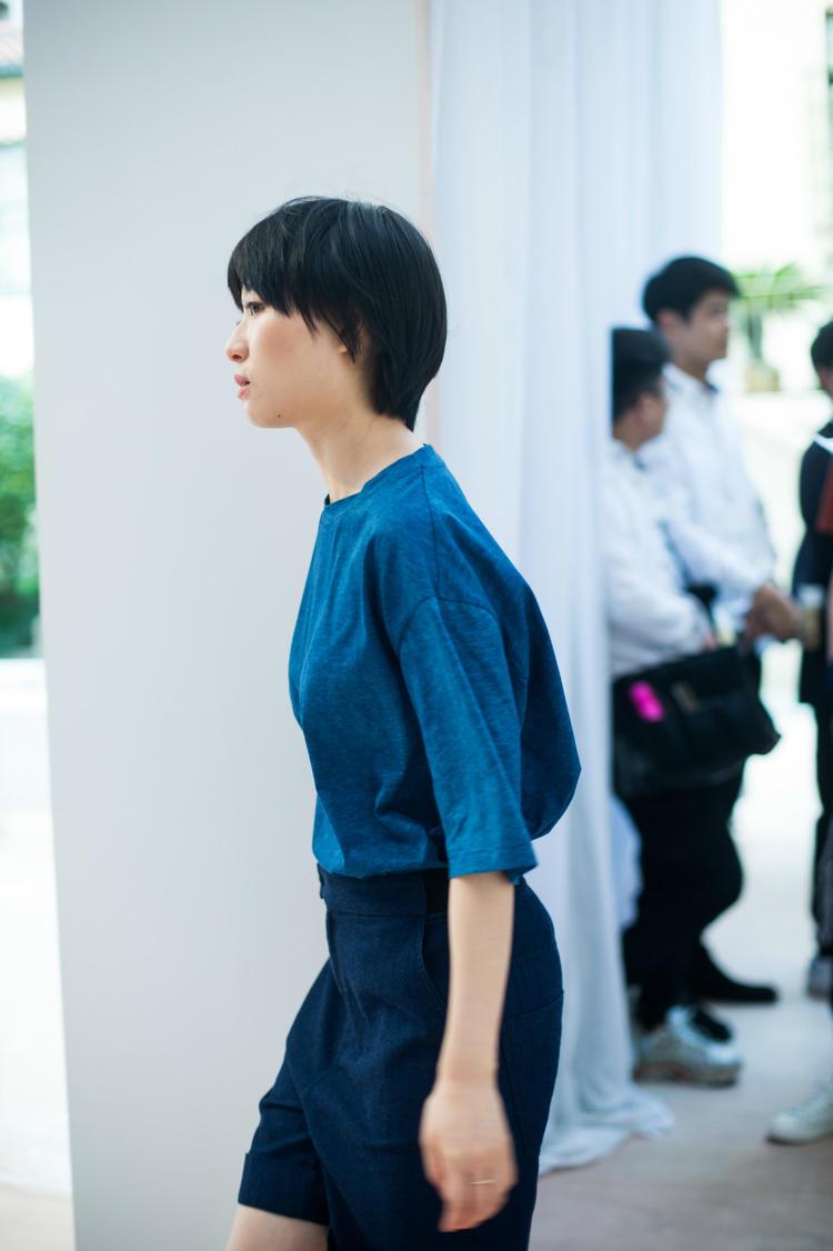 走秀在露天支起的白色帐篷中进行,四周包围着绿色植物和黄色地中海风格建筑。秀场旁就是 Klee Klee 的临街店铺,室内设计以木材搭配白色墙面,简单温馨。服装以蓝色、大地色和白色为主,挂有“环保棉”、“Indigo Juice”(一种只需少量水和能源的丹宁染色工艺)或“BCI 良好棉花”的标签。门口摆着《庄严:西部植物》的展览手册。摄影师庄严也为 Klee Klee 拍摄了 Lookbook。