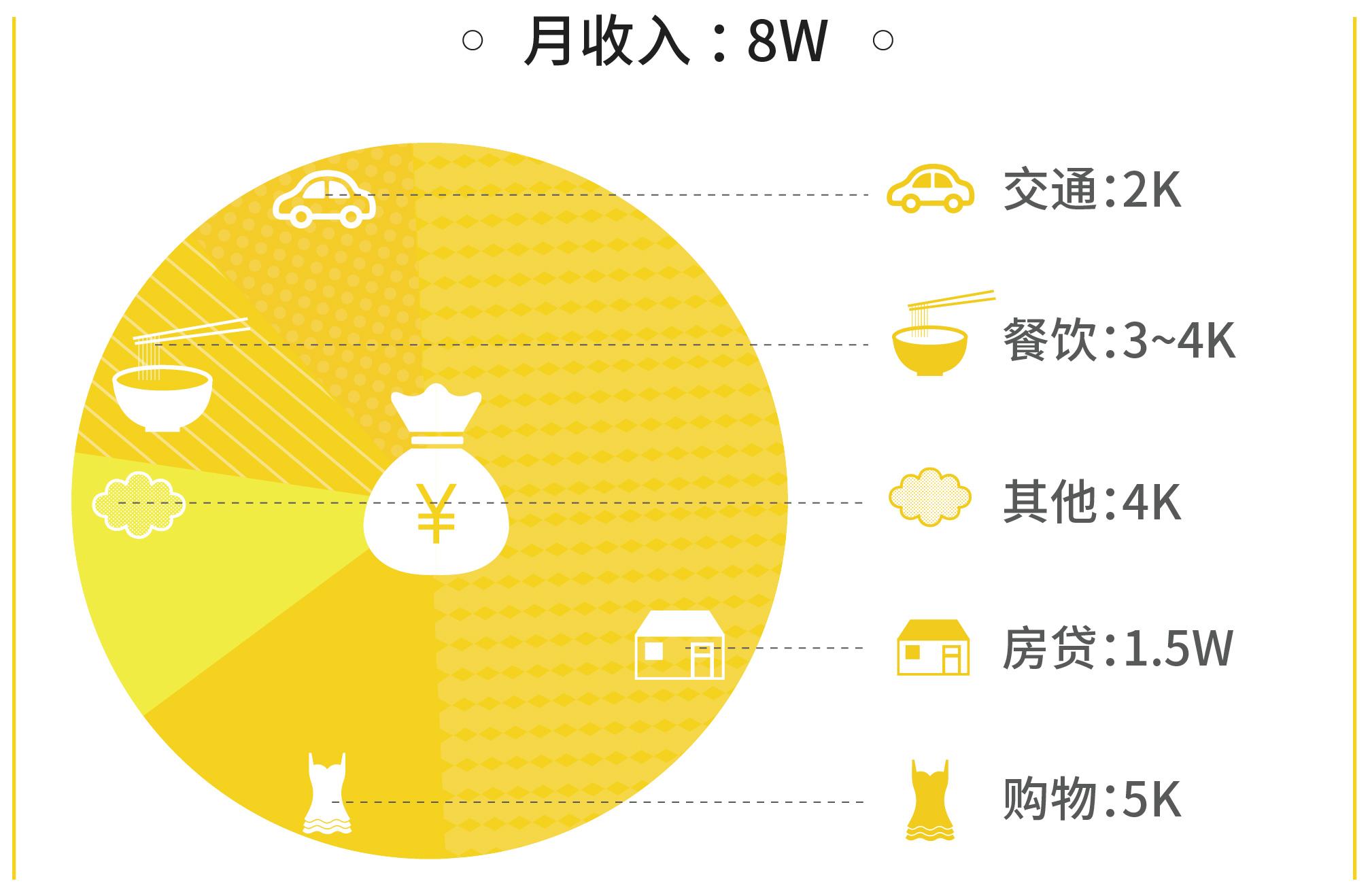 如果月薪一万,可能在房租上花掉 35%,衣食住行占到 40%,再留下 5% 的流动资金,然后把收入的 20% 拿去做理财,是比较合理的。当然,现在一线城市消费高,很可能月光,但尽量保有理财的意识吧。