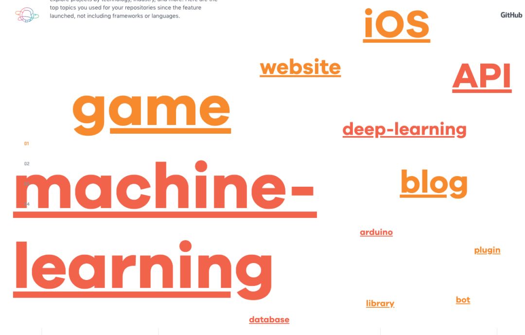 热门关键字,机器学习、游戏、iOS、API、博客、网站、深度学习、Ardiono: