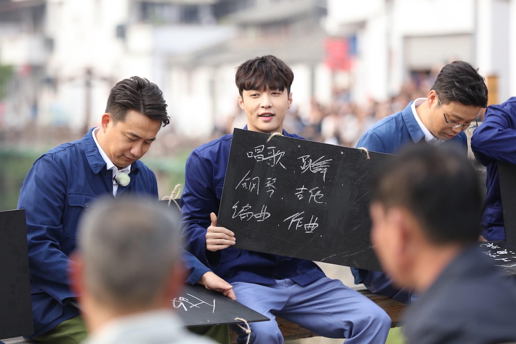 在创业之前,“极挑团”在祖上流传下来的古宅里聆听了“老祖母”的训话:“看看外面的年轻人,都在努力创业,你们六个孩子都给我出去打工,谁回来的最早、挣的最多,我就把积蓄留给谁。”来到桥头,乌泱泱全是坐等雇主来认领的工人,每个人脖子里都挂着小黑板:木工、电工、电焊……“极挑团”纷纷效仿。黄渤拿起黑板,奋笔疾书:木工、水电、油漆、电焊、装修、厨师、剪发、力工……“我可是全能,什麽都会!”王迅也不甘示弱,“电工、木匠、做漆、泥瓦……给钱就干”相比于这两位的样样精通,其余成员可就有些相形见绌,孙红雷搞怪地在黑板上写了一句:“宇宙第二漂亮(女儿第一)!”黄磊只写了“做饭”两个字,罗志祥的“求职标语”简单粗暴:“给我钱!”,“文艺青年”张艺兴,写的竟然是:唱歌、跳舞、钢琴、吉他、作曲。