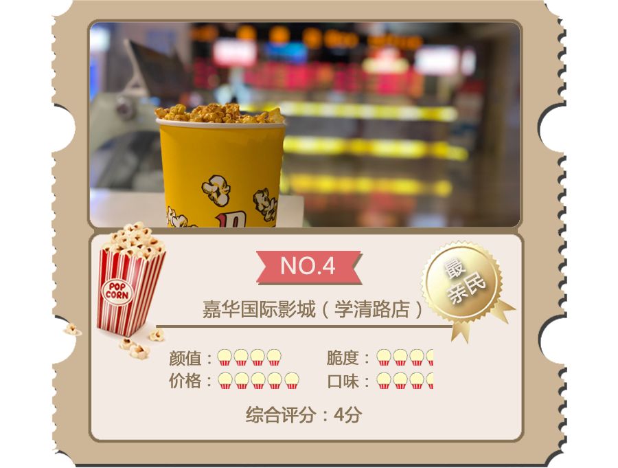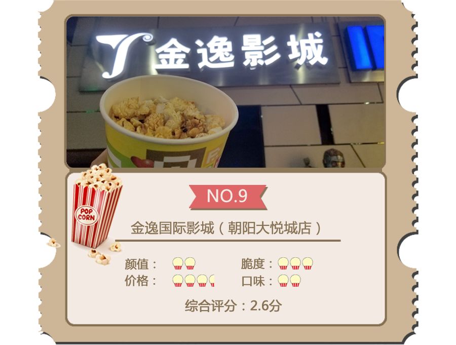 尝过这十大影院的爆米花之后,跟着小电君一起来看看它们的最终排名吧!谁家的最好吃、性价比最高一目了然!(温馨提示:随机抽测有较大随机性,各人对甜度、脆度的喜好也不尽相同,评分仅供参考)