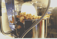 如下图,由于制作方法不同,满满一桶球型爆米花每一颗都黄澄澄+圆滚滚,拿到手里让人很有幸福感。