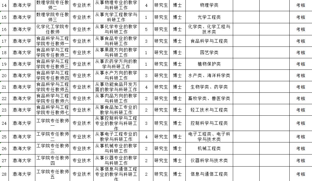 渤海大学招聘119名工作人员