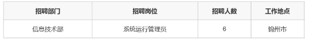 锦州银行总行信息技术部招聘6人