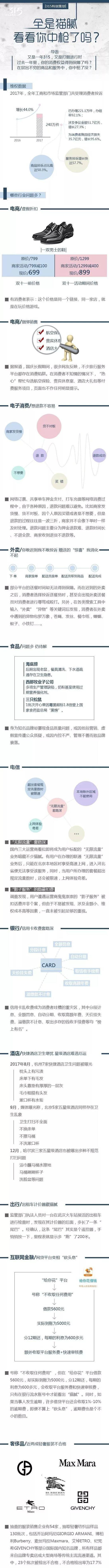 这一主题呼应了当今消费趋势的变化:网络消费、信用消费、健康消费引领潮头;共享单车、网红店、互联网金融等新兴领域经历了快速崛起和行业退潮期,其中部分企业大起大落的发展轨迹带来了一系列的连锁反应与纠纷案例。因此,与这些消费趋势相关的企业极有可能出现在315打假名单之列。