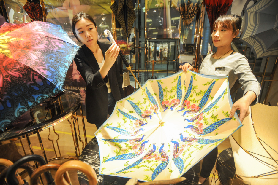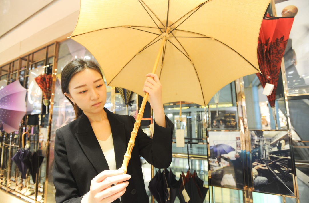 营业员介绍,这种意大利产的手工伞每年产量上万把,可以防雨防晒,做工精致,购买顾客以熟客居多。有顾客每年会买几万元的雨伞给自己和家人使用,有的顾客会不定期购买新款雨伞,消费者对这种奢侈品雨伞认可度较高,特别是一些关注国际时尚潮流的人群。