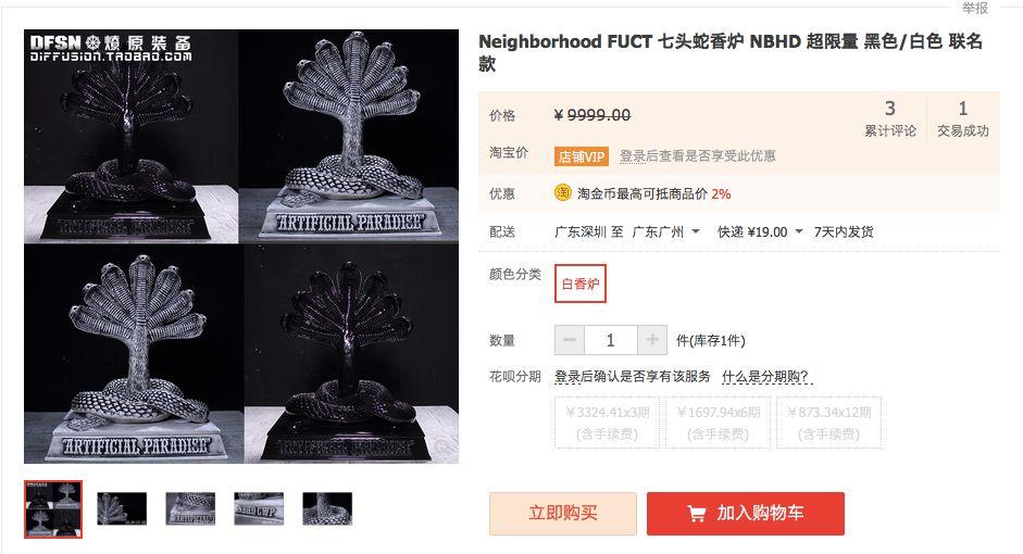 设计上,该条眼镜蛇前后方分别有「Anti Social Social Club」和「NBHD GET WEIRD」的字样浮雕,底盘则写有「STILL FEEL THE SAME」,看到实物还是挺满意的。不过唯一的缺点可能是觉得这座香座体积太小了,不够大气吧。如果,你问值不值得买?看下 NEIGHBORHOOD x FUCT SSDD 七头蛇香座现在的市场价格就知道了...(当然,肯定不会涨到七头蛇香座那么高)