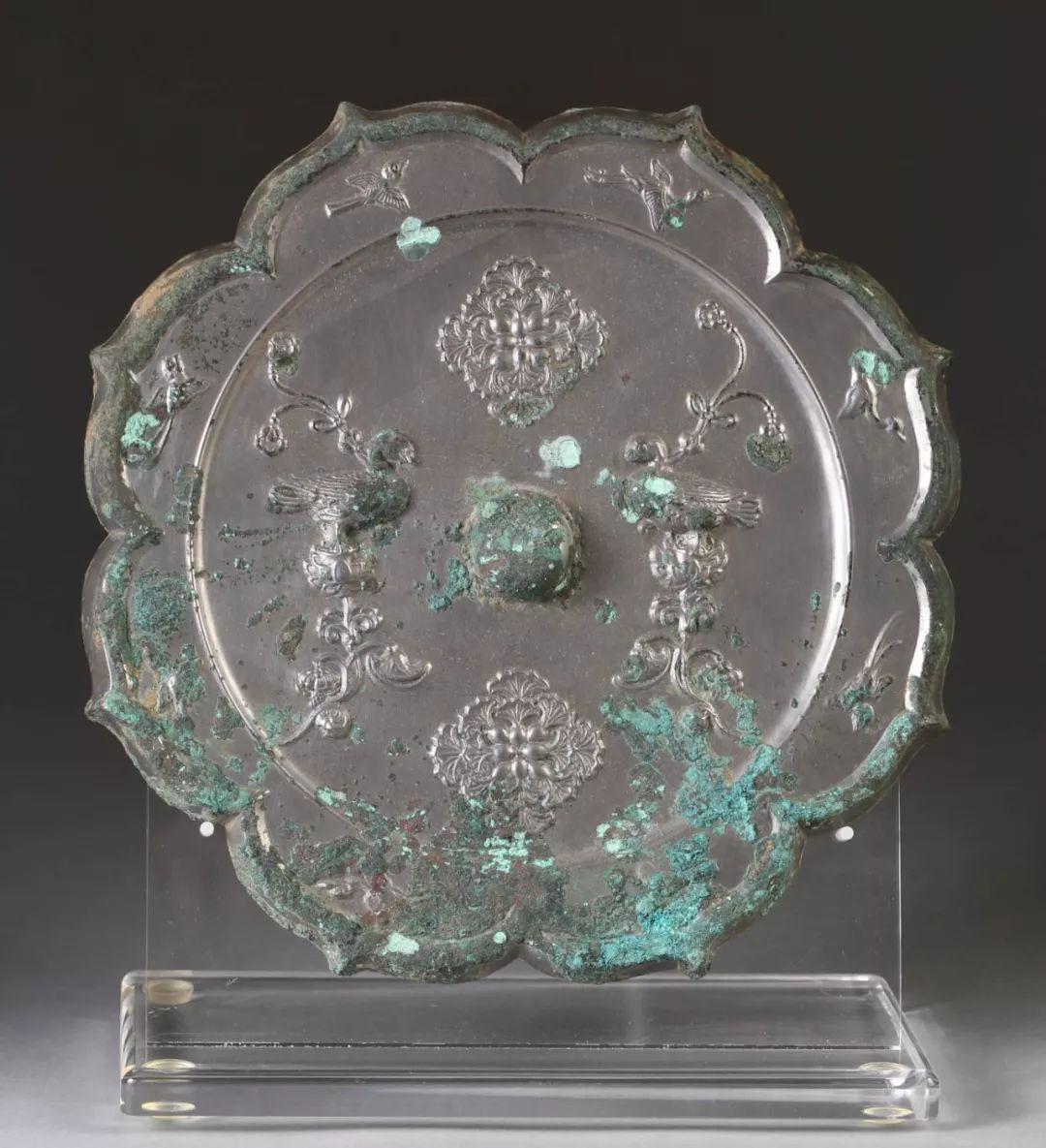 Lot 005 唐花鸟云纹八瓣菱式铜镜