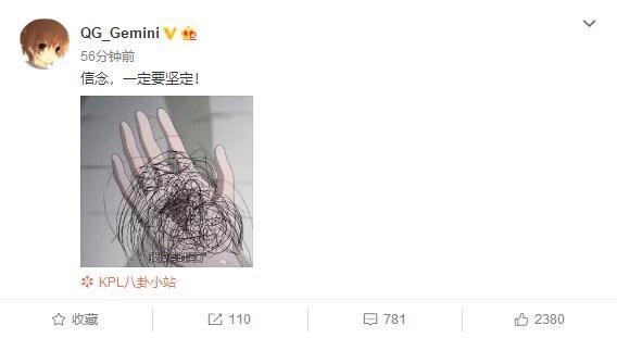 不过虽说大家都其乐融融的去往了火锅店开启了火锅大餐之旅,但是这时Gemini的一条微博却似乎有着不同的韵味!Gemini发表微博:信念,一定要坚定!But这配图却让人感受到了深深的烦恼,仙女奶这是要秃了吗?